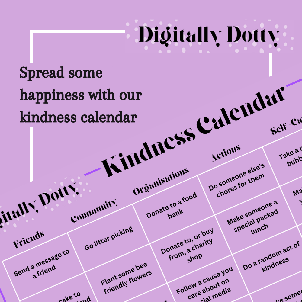 Many of the prompts are open ended, so be creative in how you interpret them! Challenge yourself to complete the calendar without spending anything, or try to make sure anything you do spend goes to small businesses or charities.