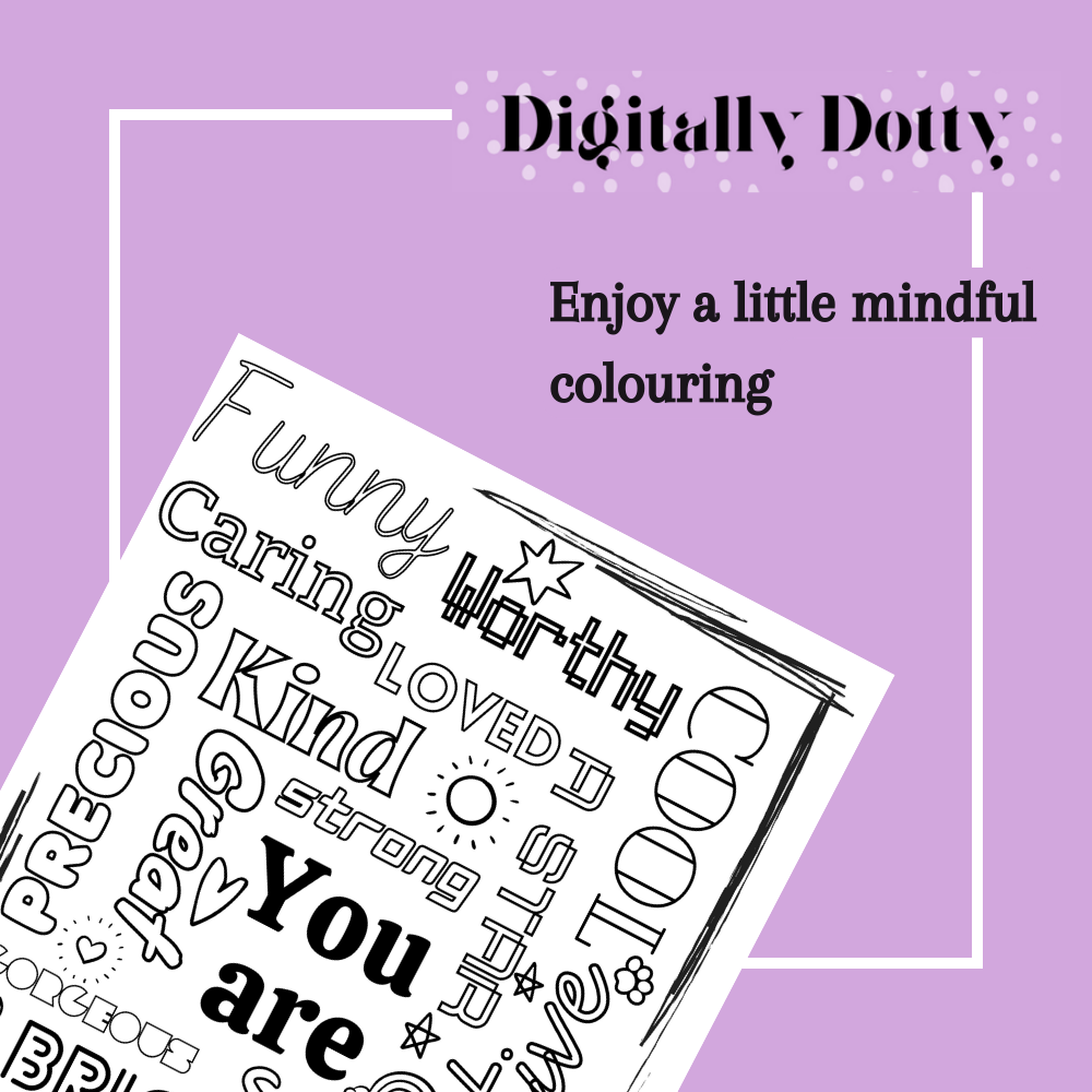 Take a moment out of your busy day to enjoy colouring the words, phrases and small images in this sheet. Spend some time reflecting on yourself and the amazing things you do!